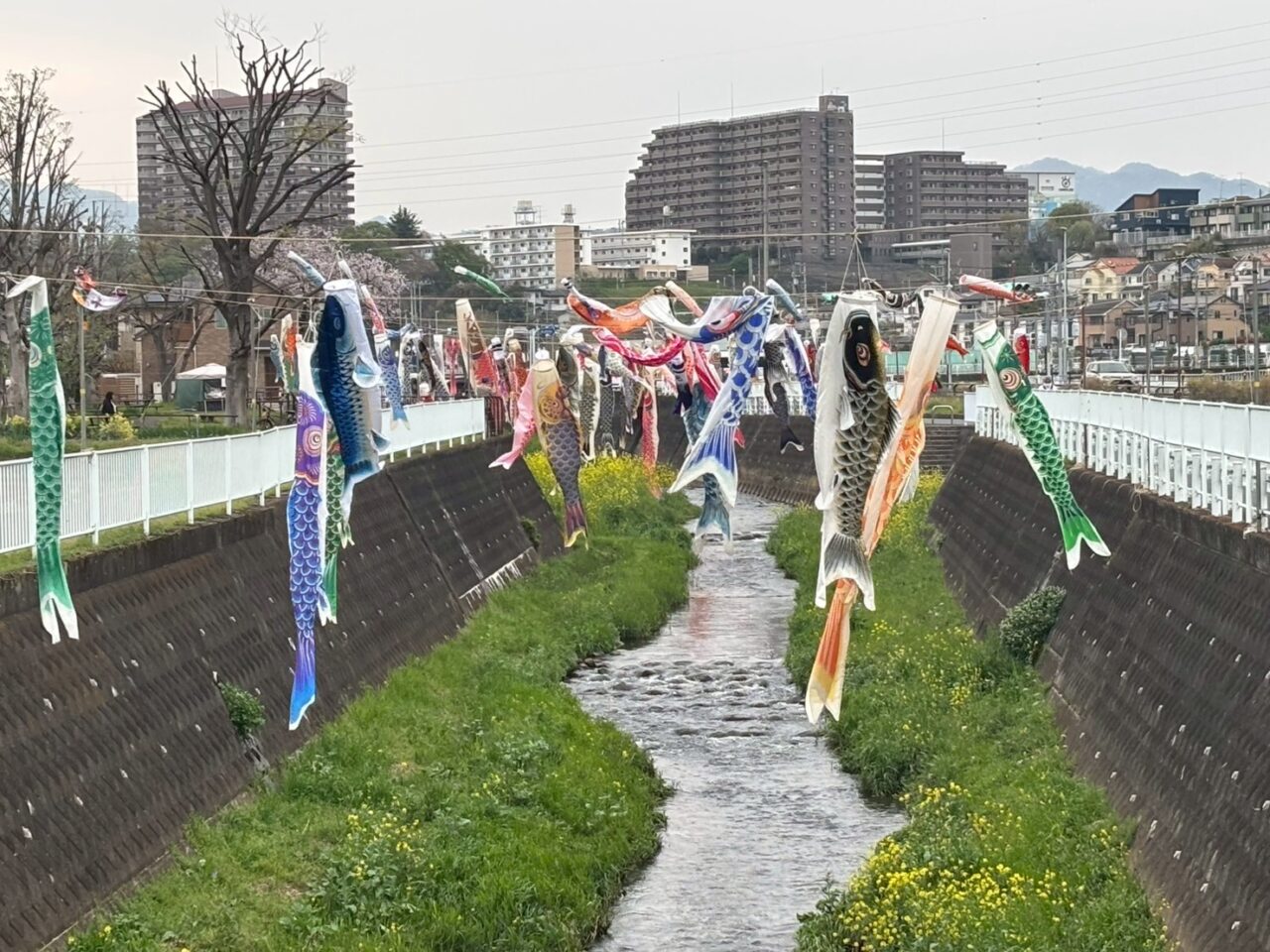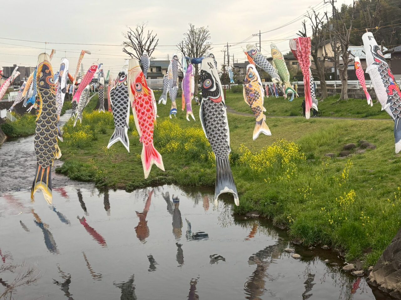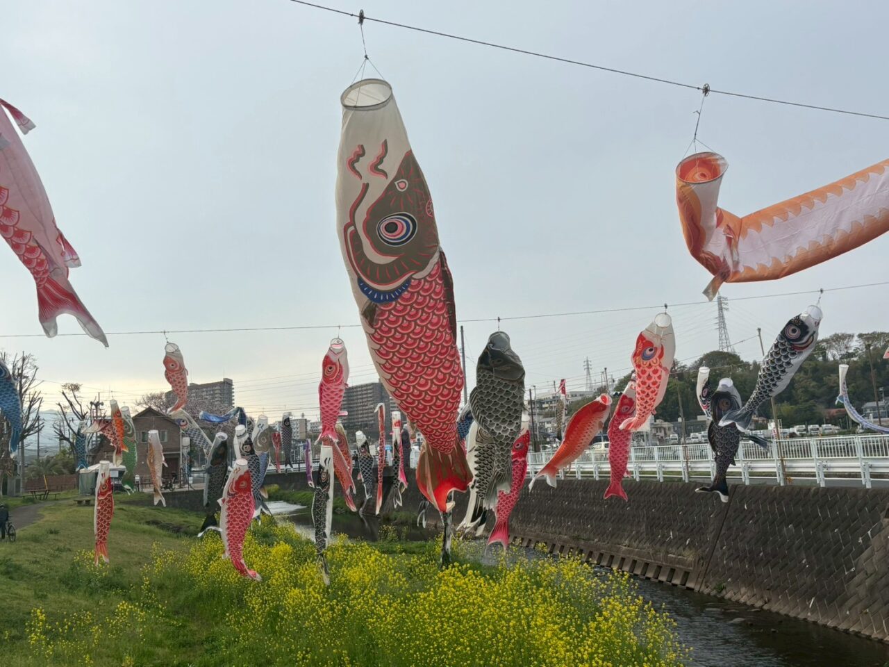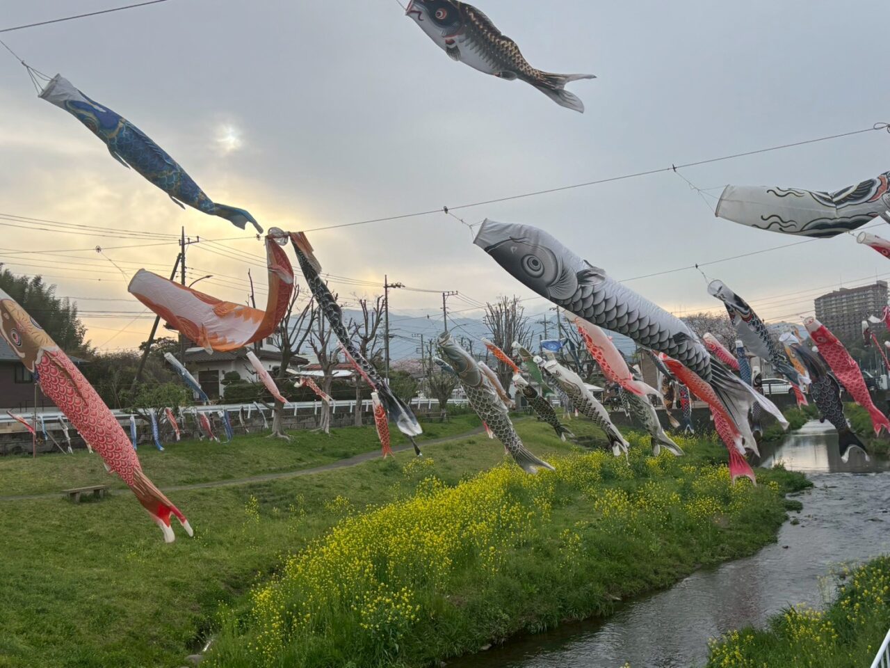 2026年は4月5日(日)に設置が行われ、川の上を元気に泳ぐ姿と、川沿いに咲く菜の花のコントラストは、この時期だけの特別な景色。散歩やサイクリングの足を止めて、つい眺めたくなる厚木の春の風景です。
