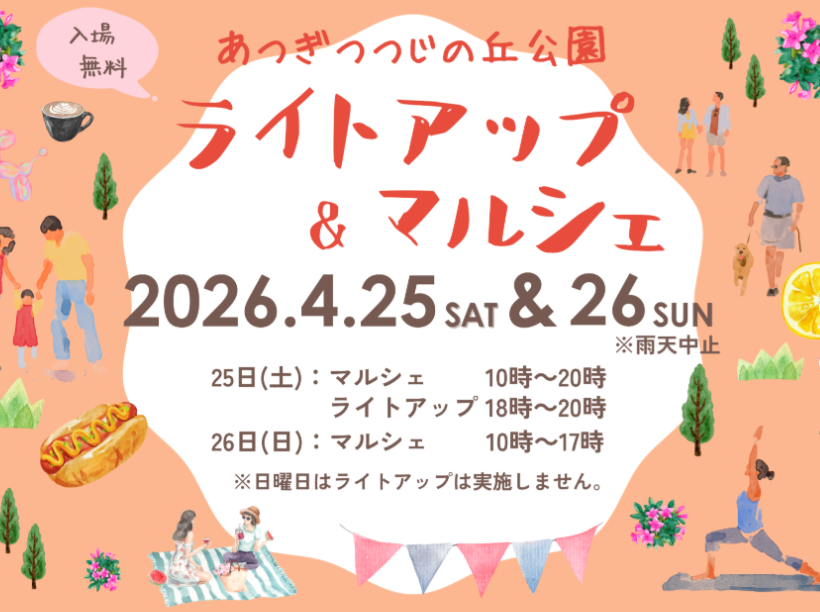 神奈川県内最大級のツツジの名所として知られる「あつぎつつじの丘公園」にて、2026年4月25日(土)と26日(日)の2日間、「あつぎつつじの丘公園ライトアップ&マルシェ」が開催されます。