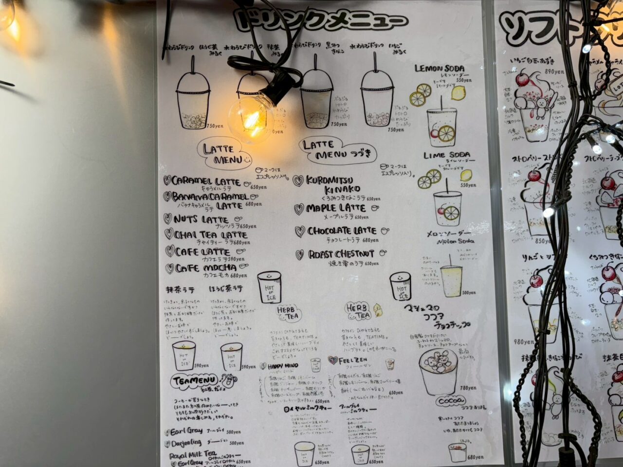 レモンソーダやメロンソーダ、そして今注目の「水わらびドリンク」も。つるんとした食感がクセになります。