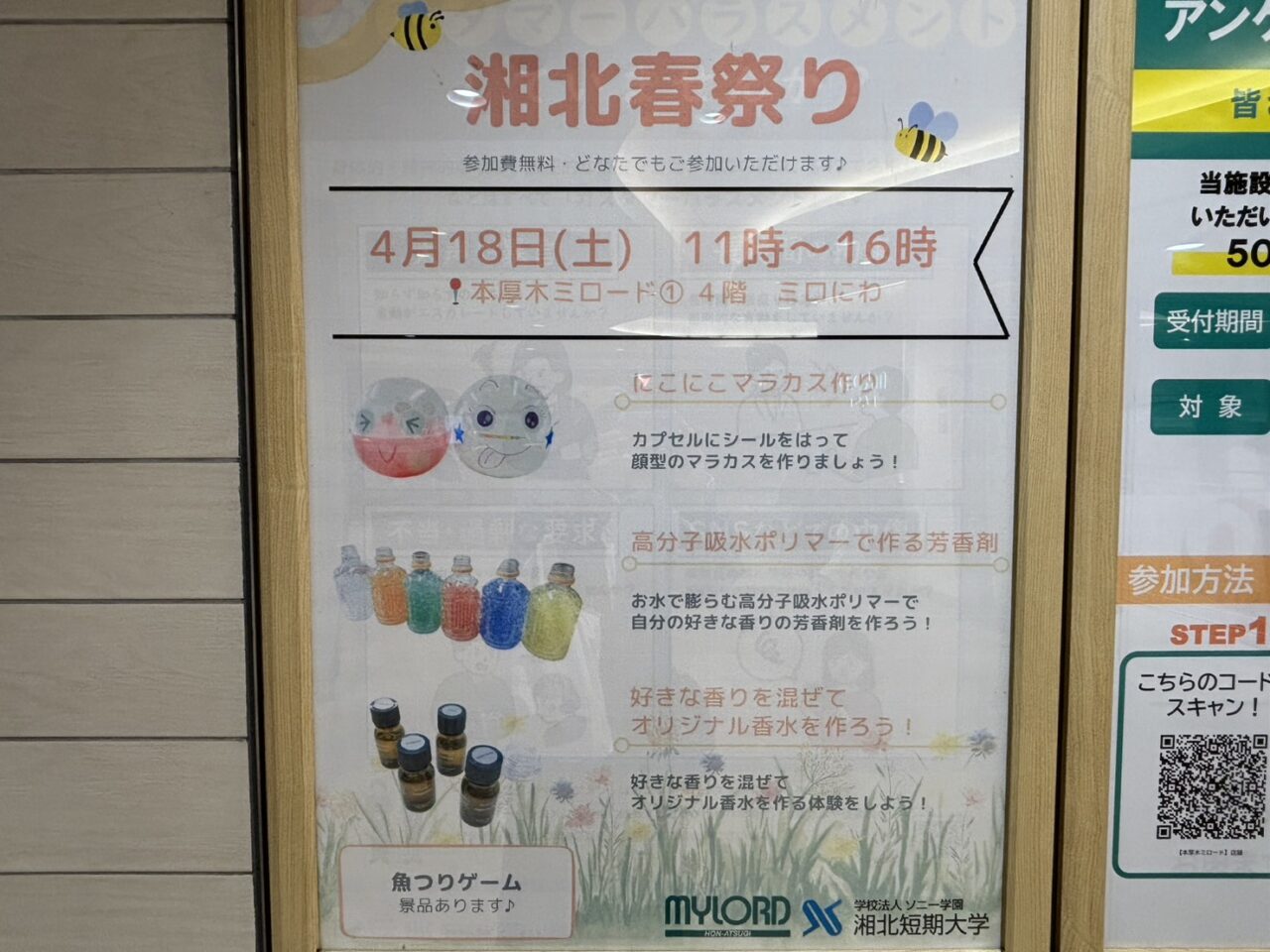 【厚木市】参加無料!4月18日(土)は本厚木ミロードへ。湘北短大プロデュースの「湘北春祭り」でワークショップを楽しもう!
